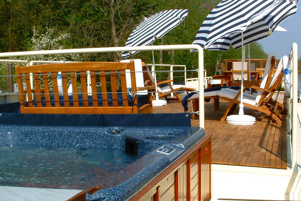 The fabulous nearly 40m long luxury barge hotel has 3 spacious cabins with Emperor size beds than can be converted to twins on request. They have air con as well as heating and all cabins have a large walk-in shower, fully stocked with Occitane products.